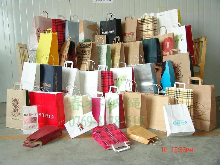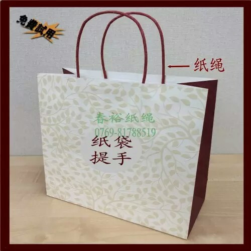 纸绳提手分为:纸卡提手、 纸袋手挽、纸袋耳、胶头提手、棉包纸绳手挽、扁纸绳手挽和直接 穿孔打结的软性纸绳提手。品种繁多,各具优点,总有一款适合您的需求!可以按照客人的要求规格颜色订做。